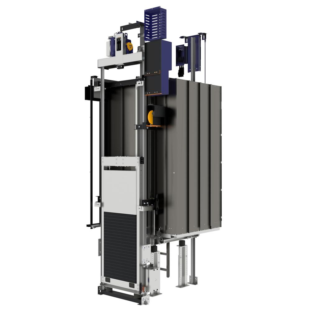 bLift được trang bị cáp thép có phủ. Khung kéo dẫn hướng trung tâm cũng có sẵn với cáp thép đặc trong phiên bản sản phẩm sLift. Chiều cao hành trình tối đa là 45 m.
